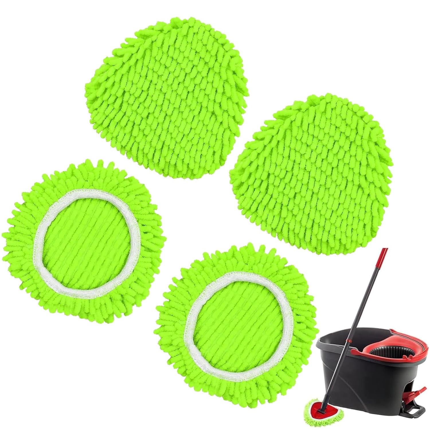4 Têtes de Serpillière Remplaçables pour Système Vileda Turbo, Recharge Mop Chenille Compatible avec Manche 76-148 cm et 1 Base – Nettoyage Multi-Surfaces pour Sols, Voitures, Camping-Cars