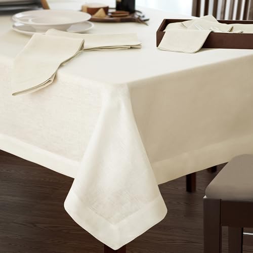 Villeroy & Boch Elrene Home Fashions La Classica Nappe en Lin, idéale pour Les Repas Formels ou Un Usage Quotidien, 177,8 x 243,8 cm, Ivoire