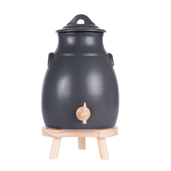 Ardosia Vinaigrier en Grès Bleu 4L Poterie Artisanale Support en Bois pour la Macération à la Maison