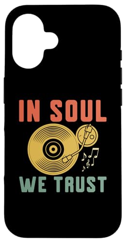 Soul Music in Soul Disque Vinyle Inscription We Trust Coque pour iPhone 16