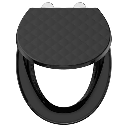 SREWOHS PRO Lunette WC Forme O en PP, Abattant Toilette Soft Close Double, Motif 3D Effet Cuir, Anti-UV Inaltérable, Système Quick Release, Fixation Top-Mount avec Vis 7 cm, Noir