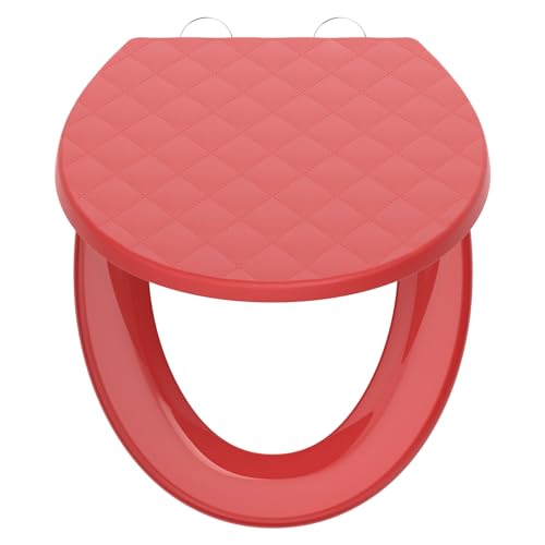 SREWOHS PRO Abattant WC Forme O en PP avec Frein de Chute Double, Motif 3D Effet Cuir, Anti-UV Haute Résistance, Lunette WC Quick Release, Fixation Top-Mount avec Vis 7 cm, Gabarit + Vidéo, Rouge