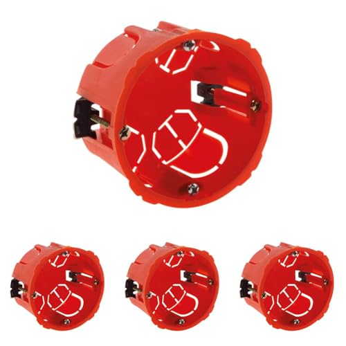 Zenitech - Boîte Placo Ø67 mm P40 mm - Pour Appareillage Électrique à Vis et Griffes - Encastrable dans Murs en Plaque de Plâtre - Haute Résistance au Feu 850° - Vis Incluses - Rouge (Lot de 4)