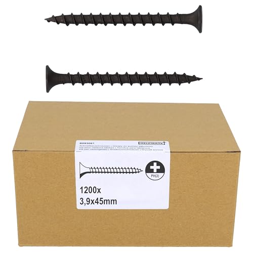 HELPMATE Vis placo à fixation rapide 3,9 × 45 mm Phosphatée PH2 1200 pièces à filetage grossier Bois, Vis a placo pour cloisons sèches, Tête en trompette, Profilés en U
