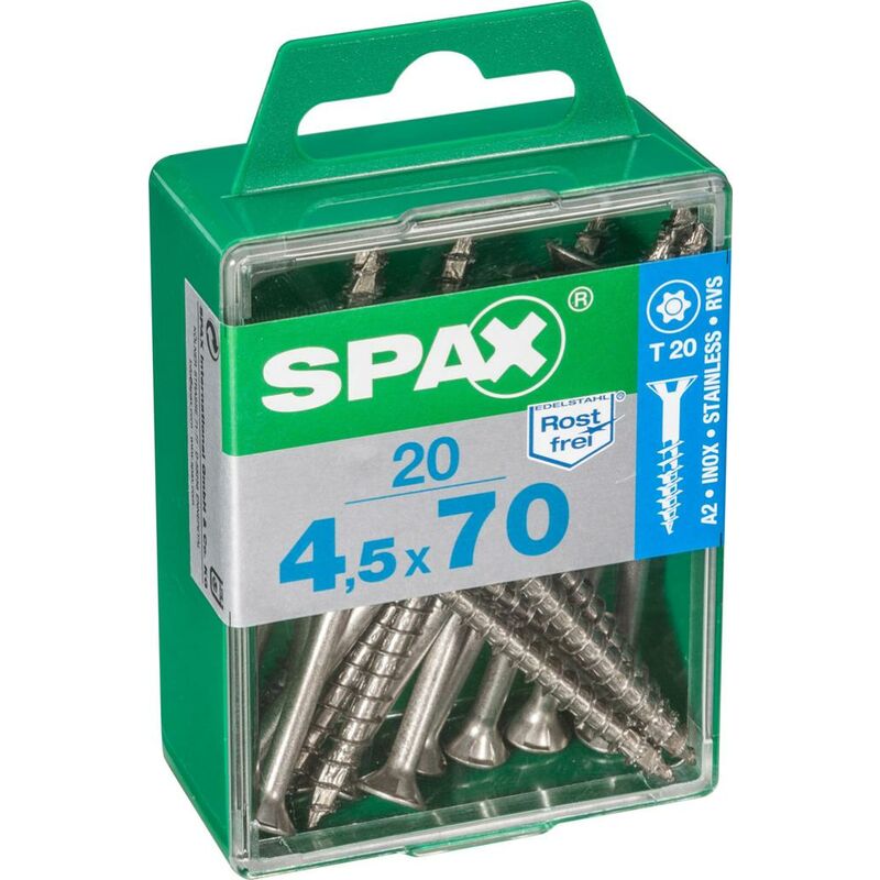 Spax - Lot de 20 vis inox tête fraisée torx Diam.4.5 mm x L.70 mm
