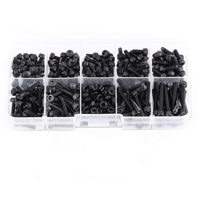 300pcs Coffret M3 Vis à six pans creux à tête hexagonale en acier allié et M3 Écrous hexagonale en acier allié, Assortiment Vis et écrous M3 x