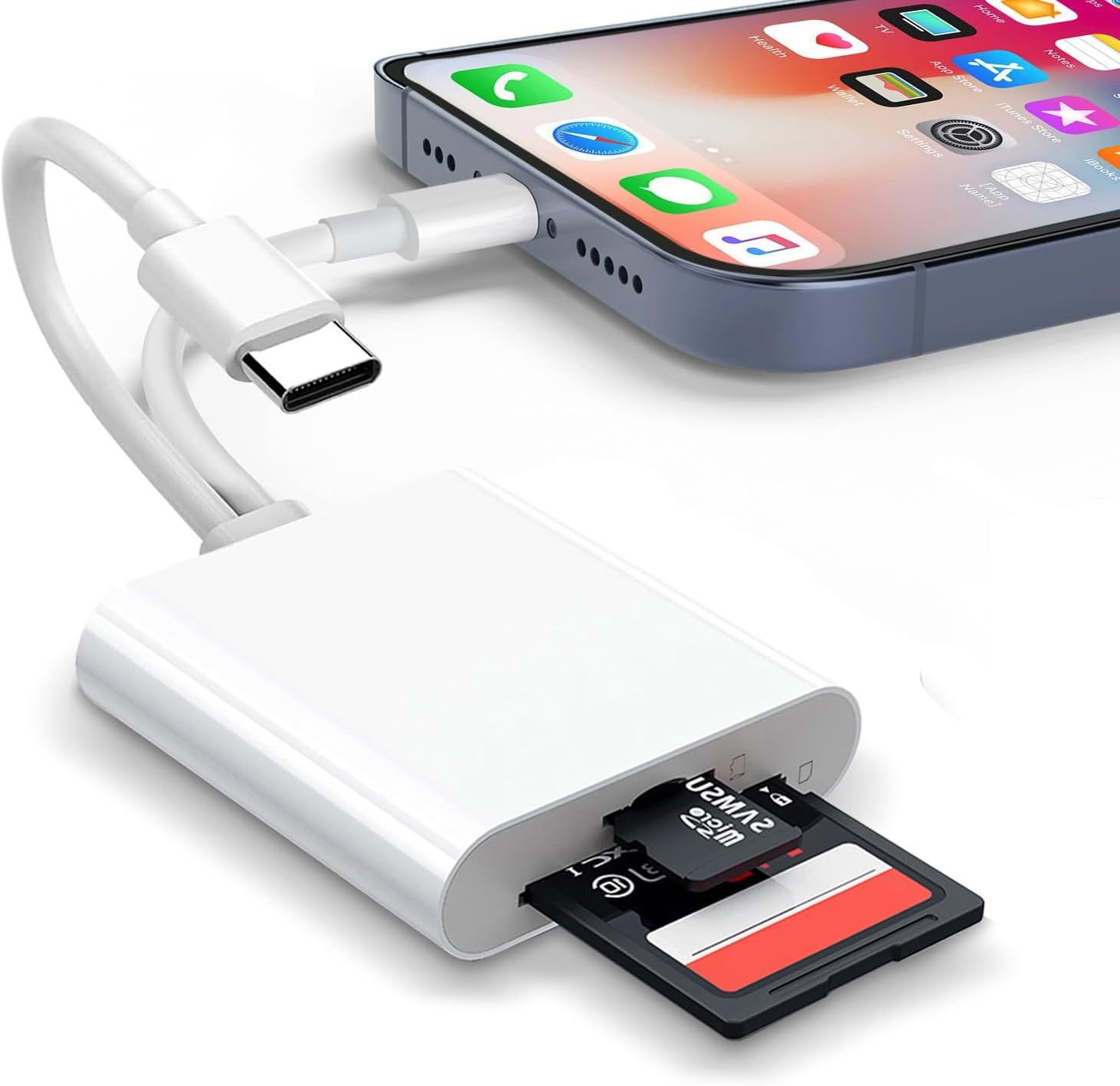 Lecteur de carte SD pour iPhone,iPad,Lightning+USB C lecteur de carte mémoire adaptateur USB C lecteur de carte SD avec double fente MicroSD/SD USB OTG adaptateur appareil photo visionneuse