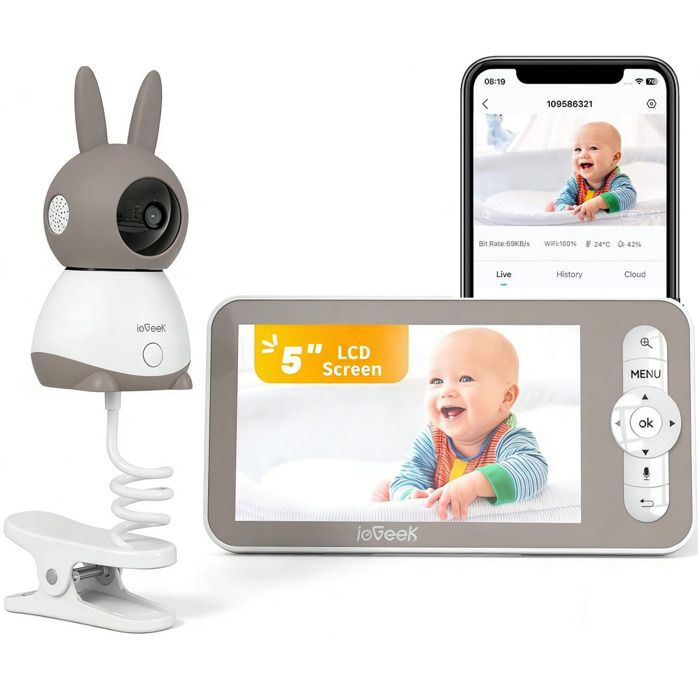 ieGeek Top 2K/5 HD écran Babyphone Caméra Bebe Baby Phone Vidéo connecté Smartphone Visiophone Bébé avec Vision Nocturne Audio