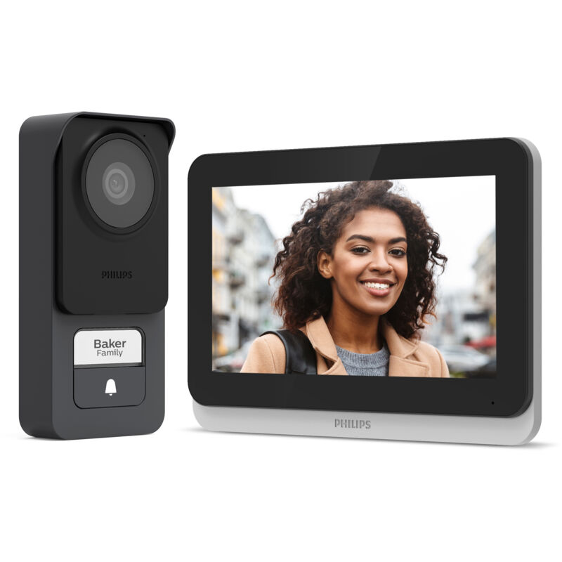 Philips – Kit de vidéosurveillance avec caméra intérieure connectée 2k – Visiophone filaire 7' couleur tactile – Application mobile WelcomeEye