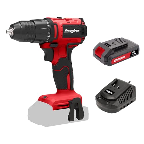 Energizer - Perceuse Visseuse Sans Fil 20V Ultra Légère Couple 40 Nm, 2 Vitesses (1850 RPM), Mandrin 10mm, Inclus 2 Batteries 20V 2AH + Chargeur Rapide, Outil Haute Performance Bricolage & Chantier