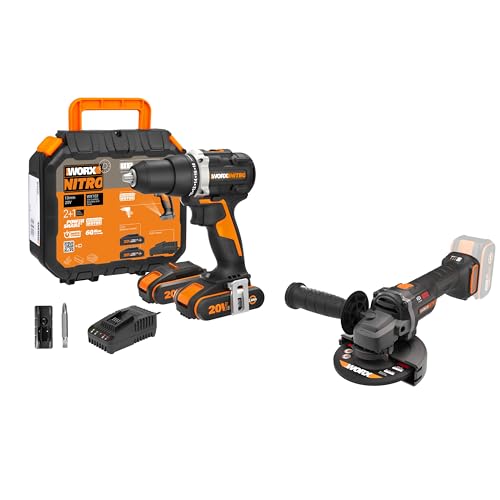 PACK WORX PRO+ Perceuse-Visseuse 20V + Meuleuse d'Angle 20V + 2 Batteries 2Ah + Chargeur (Idéal Pour Tous les Projets de Bricolage et de Rénovation)