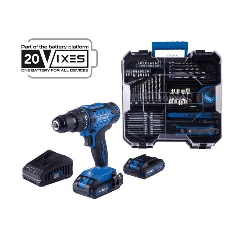 Perceuse-visseuse SCHEPPACH - 20V IXES - 50 Nm mandrin 13mm + 2 batteries + chargeur + 74 accessoires + Coffret - C-DTB74/2-X