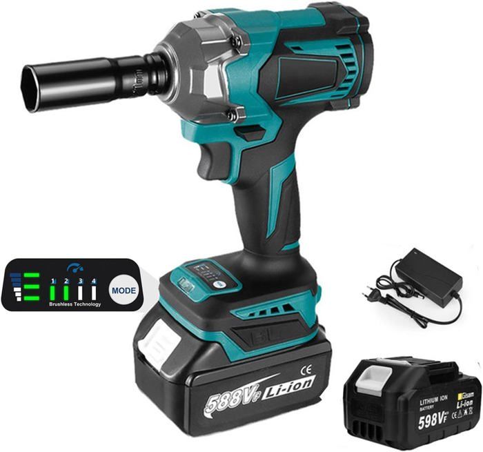 Visseuse a choc 4000Mah clé à chocs électrique sans fil 2 en 1 520N.m corps de tournevis douille 1/2 pouces pour batterie 18V