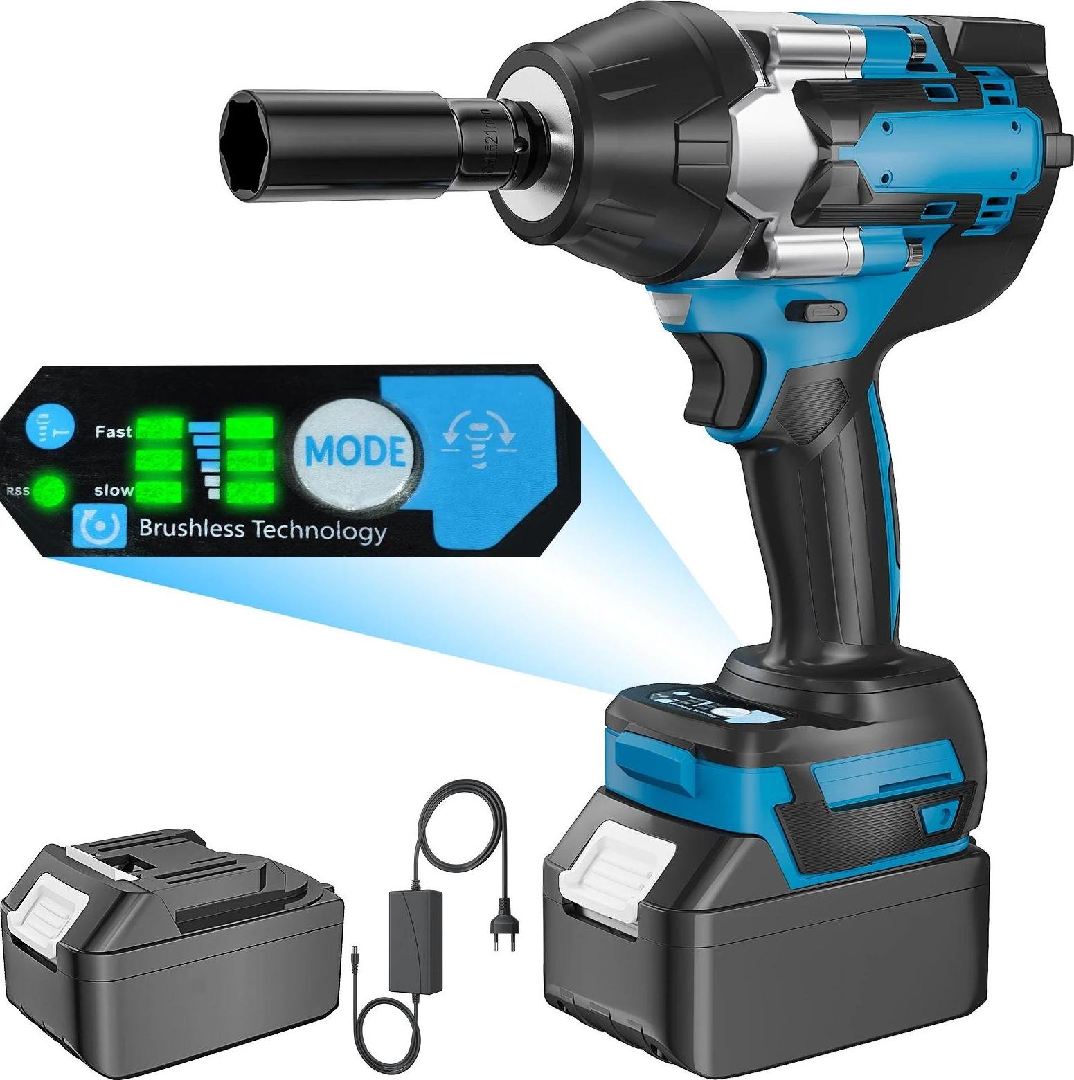 Visseuse à chocs sans fil - 1,27 cm carré - Sans balais - 1800 Nm - 21 V - 3 vitesses avec arrêt automatique en marche arrière - Sans batterie - Bleu