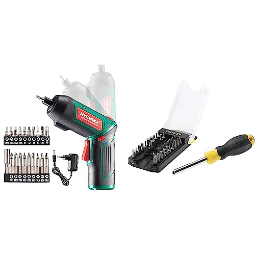 HYCHIKA Visseuse Sans Fil 6Nm, Visseuse Devisseuse Sans Fil 2000mAh 3.6V avec 20 Accessoires, Lampe LED, Câble de Charge USB, Pour la Réparation et le Bricolage