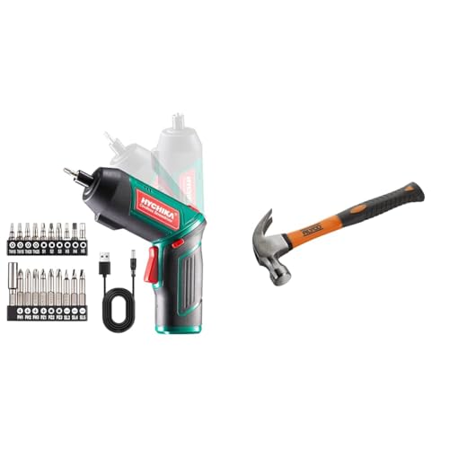 Visseuse Sans Fil 6Nm, HYCHIKA Visseuse Devisseuse sans Fil 2000mAh 3.6V avec 20 accessoires & Alyco - Marteau de charpentier manche fibre de verre 560 gr - 170142