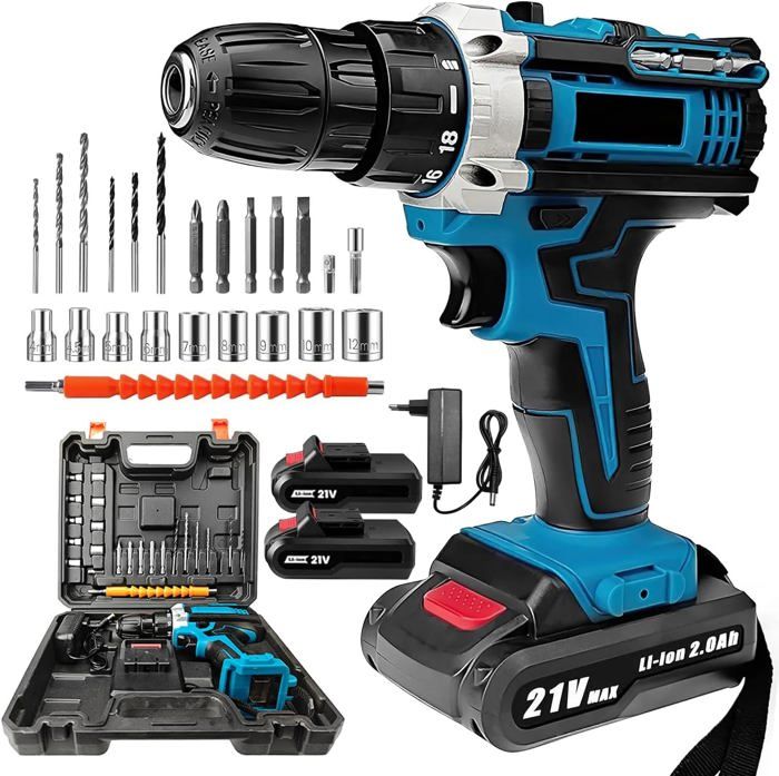 Perceuse Visseuse Sans Fil - Visseuse devisseuse sans fil - Perceuse visseuse à percussion sans fil 21V-22 accessoires