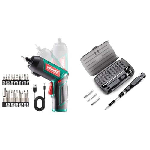 Visseuse Sans Fil 6Nm, HYCHIKA Visseuse Devisseuse sans Fil 2000mAh 3.6V & Vinabo Jeu Tournevis de Précision 32 en 1- Mini Set Tournevis Magnétique Bricolage Electronique de Réparation Kit