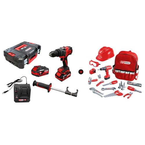 KS Tools - 515.4730F-A1 - Lot Perceuse-Visseuse sur batterie 18V Brushless - Sac à Dos avec Outils pour Enfant - 3 Modes Réglables - Moteur Brushless - Système Anti-Retour