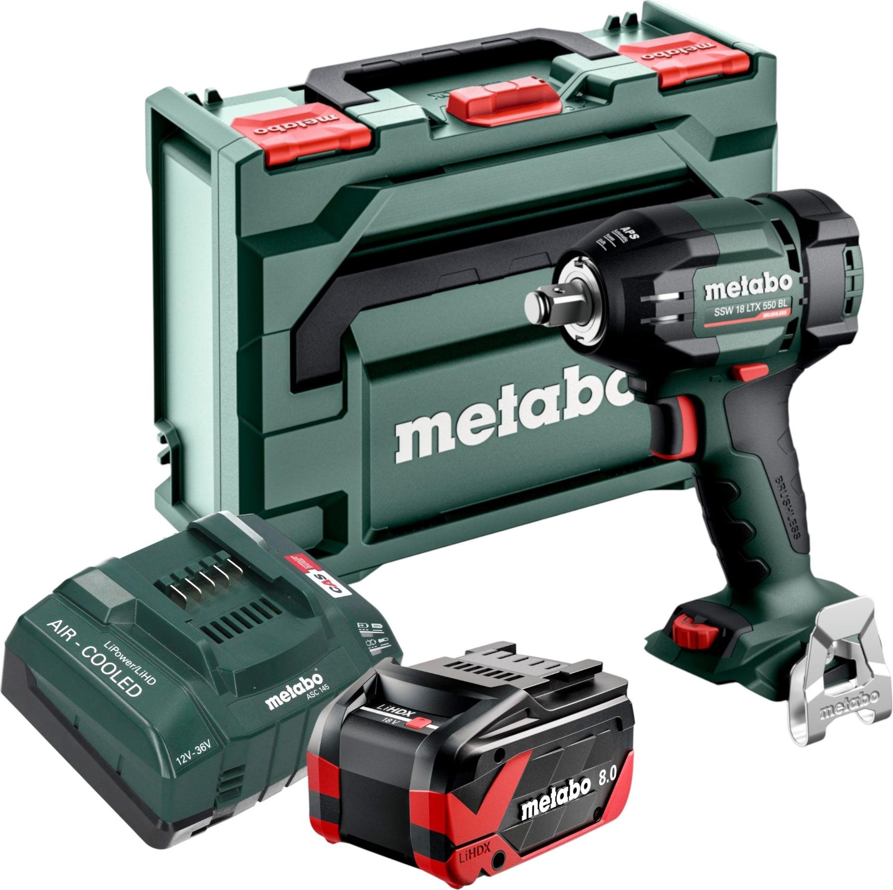 Metabo SSW 18 LTX 550 BL Visseuse à choc sans fil 18 V 550 Nm Brushless + 1x batterie LiHDX 8,0 Ah + chargeur + metaBOX