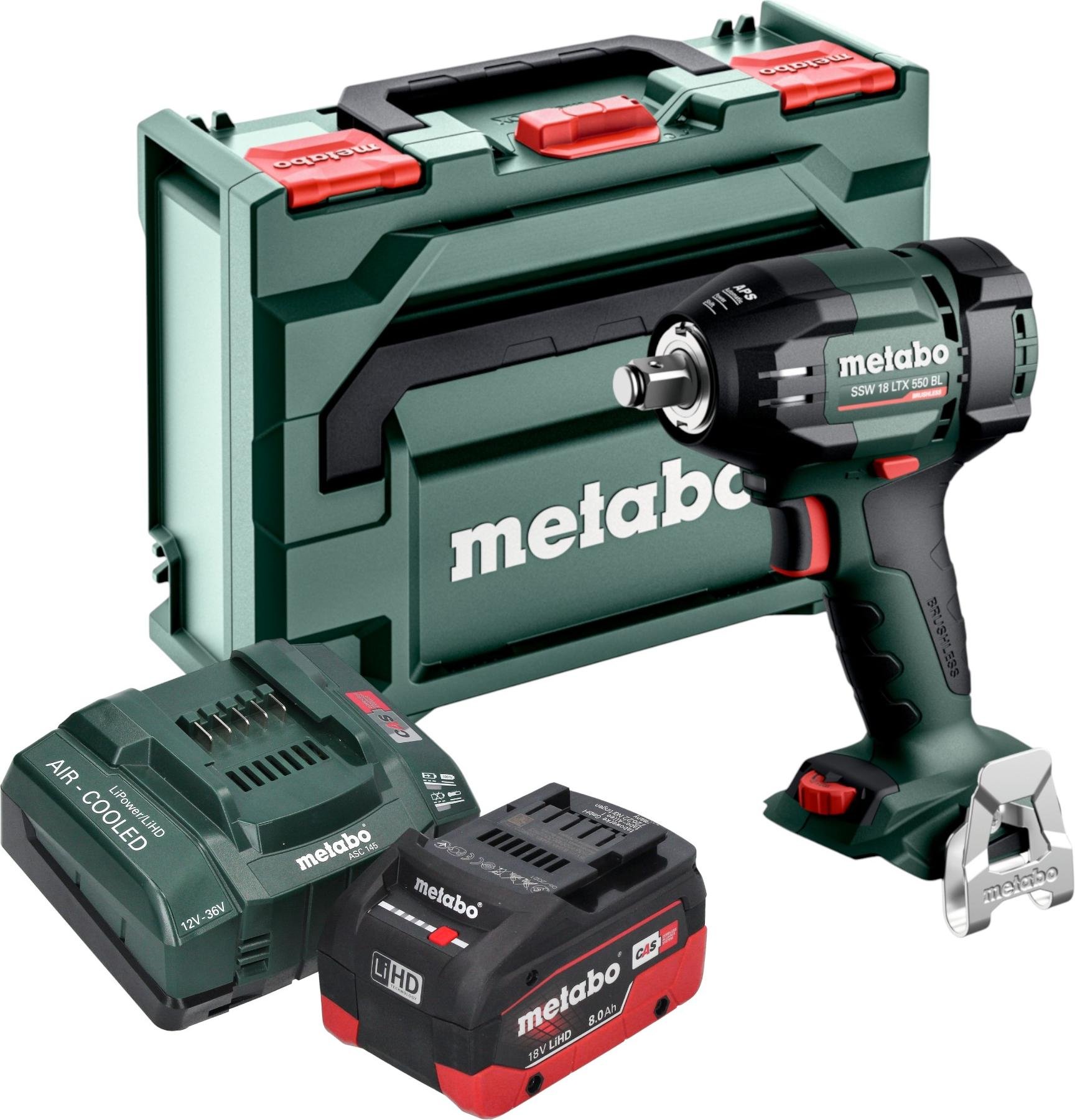 Metabo SSW 18 LTX 550 BL Visseuse à choc sans fil 18 V 550 Nm Brushless + 1x batterie LiHD 8,0 Ah + chargeur + metaBOX