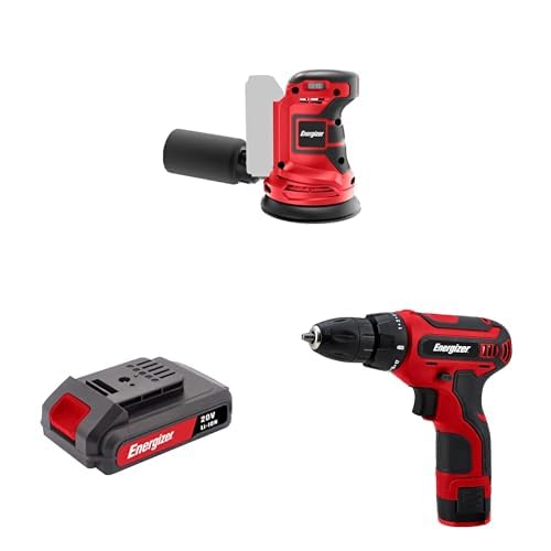 Pack Ponceuse Circulaire Energizer – Ponceuse circulaire sans fil Energizer 20v + Perceuse visseuse Energizer 20v + 1 Batterie 20v 2ah + 1 Chargeur de batterie