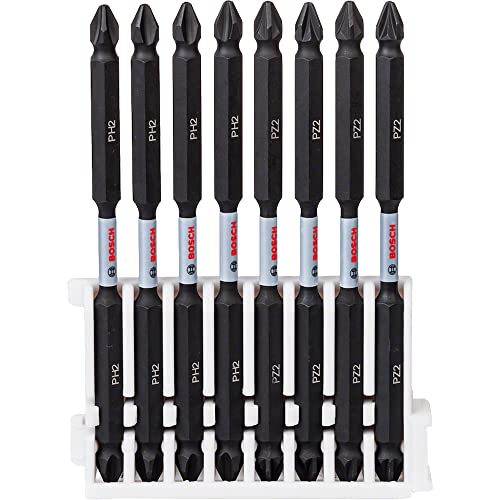 Bosch Accessories Professional 8 pièces Pack d'Embouts de Vissage Double Tête (Impact Control, PH/PZ Bits, Longueur 110mm, Pick and Click, Accessoires de visseuse à percussion) 2608522348 Framboise