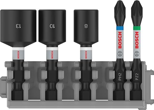 Bosch Accessories Professional 5 pièces Pack d'Embouts de Vissage und et Clé à Douille (Impact Control, PZ/PH Bits, Longueur 50mm, Pick and Click, Accessoires de visseuse à percussion) 2608522350