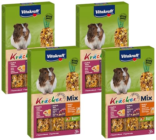 Vitakraft Kräcker - Friandise pour Lapin Nain Assortiment Fruits de Bois, Miel et Popcorn - 1x3 (Lot de 4)