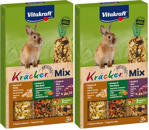 Vitakraft Kräcker - Friandise pour Lapin Nain Assortiment Popcorn et Miel-légumes et Betterave-Raisin et Noix 1x3 (Lot de 2)