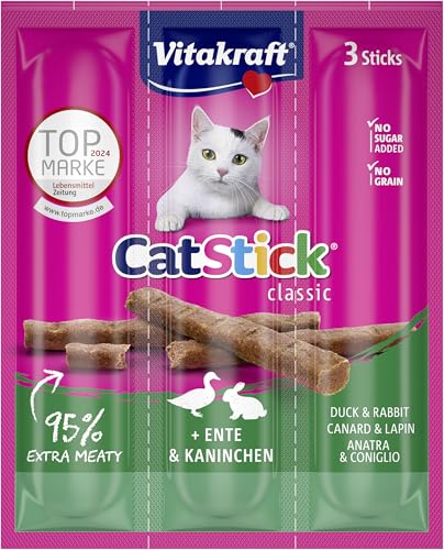VITAKRAFT- Cat Stick Classic, Friandises Pour Chats, Stick Au Canard Et Lapin, Format Économique, Sans Sucres Ajoutés, (1 Paquet De 3X6G)