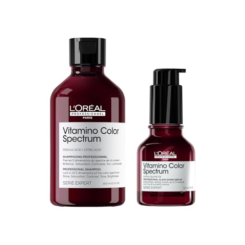 L'OREAL PROFESSIONNEL - Routine Shampoing Cheveux Colorés + Sérum - Protège La Coloration Jusqu'À 100 Jours - Nourrit, Hydrate & Fait Briller Les Cheveux - Série Expert Vitamino Color Spectrum
