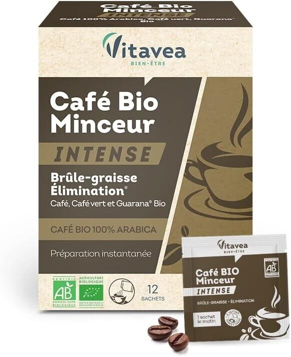 Café Minceur BIO Intense Vitavea : Brûle-graisse 100% Arabica - 12 sachets