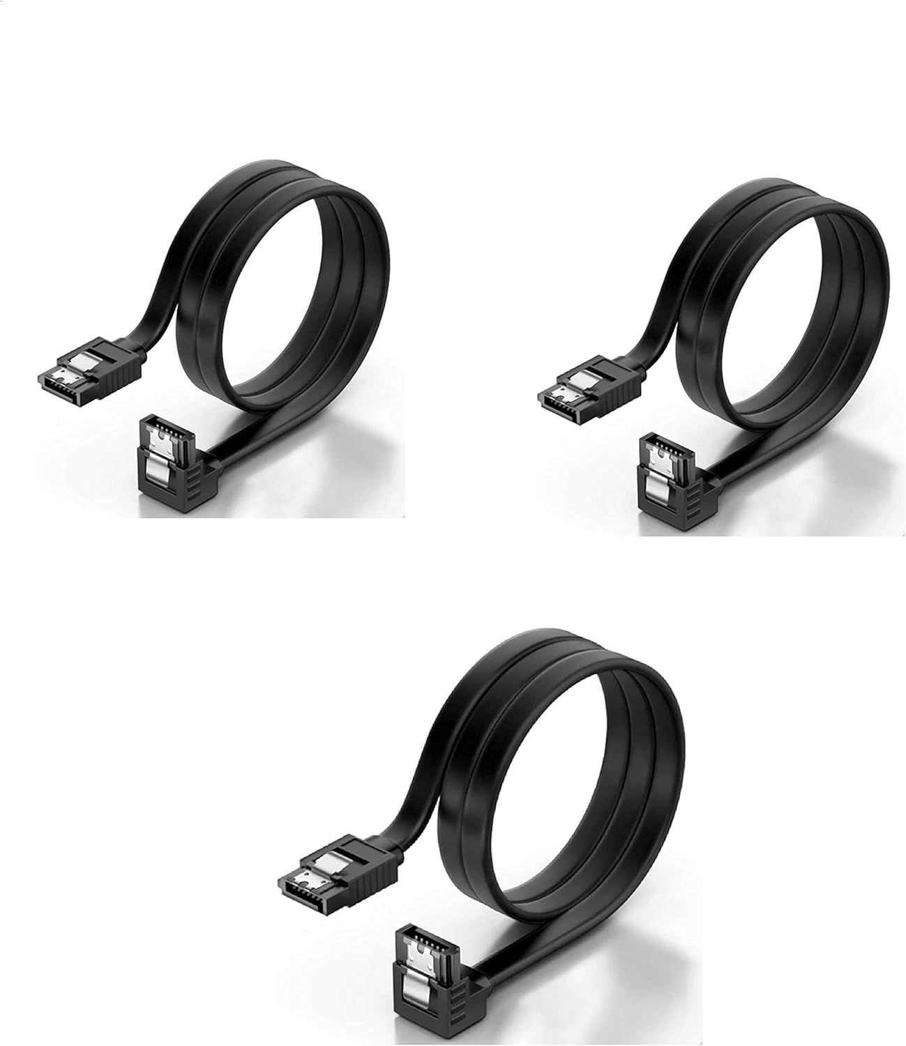 3X Cables Sata 3, 35 Cm 90 Droit Degrés Angle Data Câble Avec Loquet De Verrouillage, 6 Go/S Rapide Vitesse Pour Ssd Hdd Cd Dvd, Clip En Métal Type L Connecteur Jusqu'À Serial Ata/ 600[X3588]