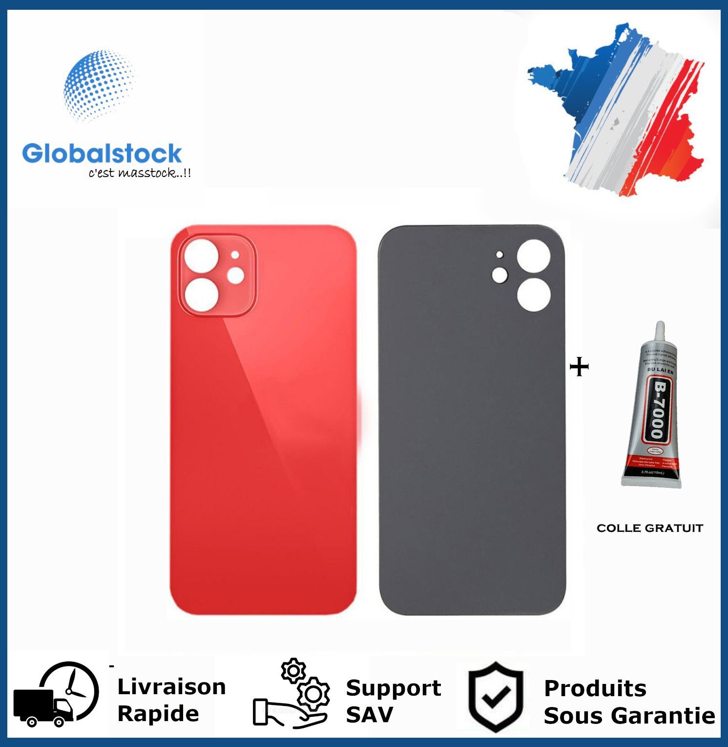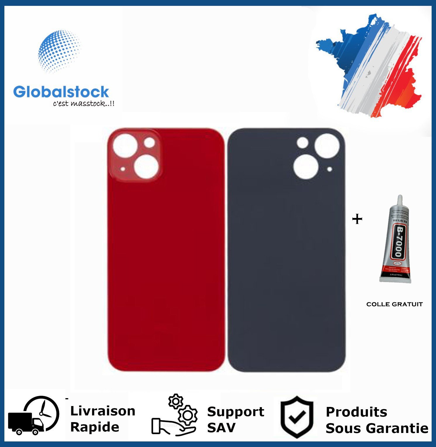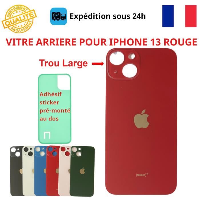 SGV Vitre arrière pour iPhone 13 avec trou pour appareil photo agrandi Logo OEM (sans adhésif) Rouge