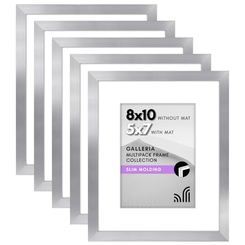Americanflat Collection Galleria - Lot de 5 cadres photo de 12,7 x 17,8 cm avec passe-partout ou cadre de 20,3 x 25,4 cm sans passe-partout - pour affichage mural ou sur table avec vitre en plexiglas