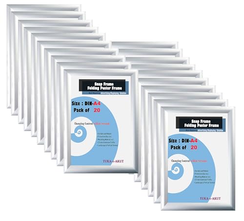 TUKA-i-AKUT 20x A4 Cadre à Clipser en Aluminium, Profilé Aluminium 25 mm Cadre pour Affiche Photo Poster, Cadre d'Affichage avec Vitre de Protection, Matériel de Fixation Argent Couleur TKD8420-A4-20X