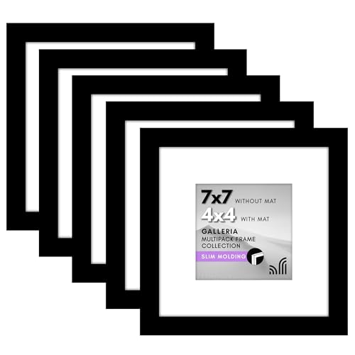 Americanflat Collection Galleria - Lot de 5 cadres photo de 10,2 x 10,2 cm avec passe-partout ou cadre de 17,8 x 17,8 cm sans passe-partout - pour affichage mural ou sur table avec vitre en plexiglas