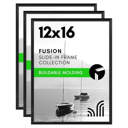 TUKA-i-AKUT A3 Cadre à Clipser en Aluminium, Profilé Aluminium 25 mm Snap Cadre pour Affiche Photo Poster, Cadre d'Affichage avec Vitre de Protection, Matériel de Fixation Noir Couleur TKD8420-A3