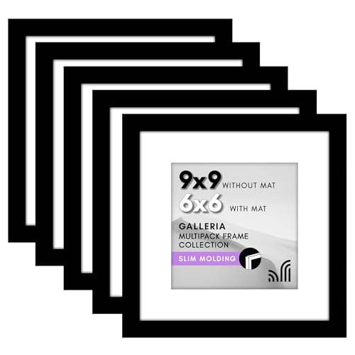 Americanflat Collection Galleria - Lot de 5 cadres photo de 15,2 x 15,2 cm avec passe-partout ou cadre de 22,9 x 22,9 cm sans passe-partout - pour affichage mural ou sur table avec vitre en plexiglas