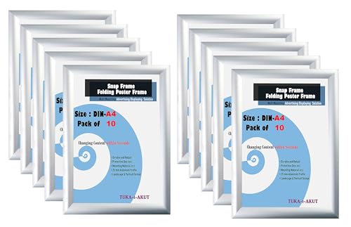 TUKA-i-AKUT 10x A4 Cadre à Clipser en Aluminium, Profilé Aluminium 25 mm Cadre pour Affiche Photo Poster, Cadre d'Affichage avec Vitre de Protection, Matériel de Fixation Argent Couleur TKD8420-A4-10X