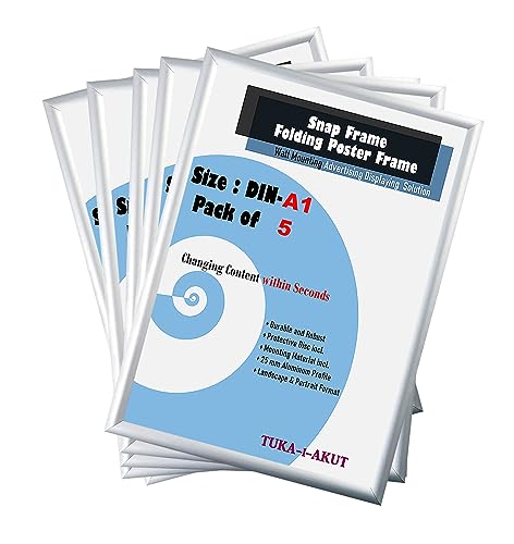 TUKA-i-AKUT 5x A1 Cadre à Clipser en Aluminium, Profilé Aluminium 25 mm Cadre pour Affiche Photo Poster, Cadre d'Affichage avec Vitre de Protection, Matériel de Fixation Argent Couleur TKD8420-A1-5X