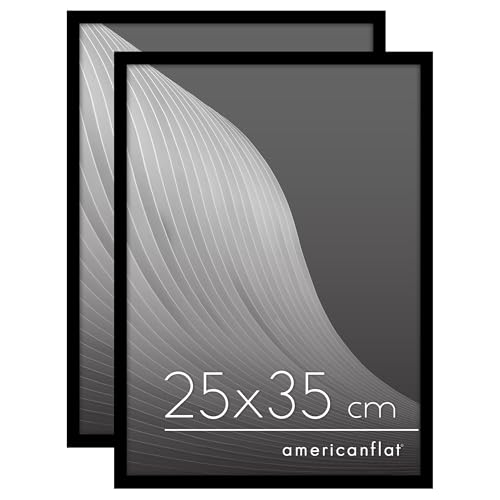 Americanflat Cadre Photo 25x35 cm Noir - Cadre 35x25 cm avec Bordure Fine, Vitre Antichoc, Matériel de Suspension Intégré pour Mur - Lot de 2