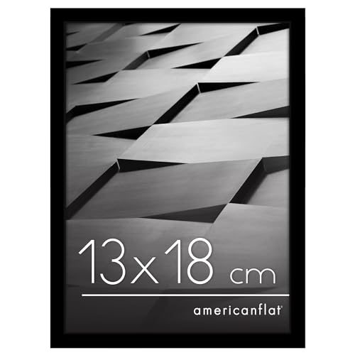 Americanflat Cadre Photo 13x18 cm Noir - Cadre 13x18 cm avec Bordure Fine, Vitre Antichoc, Chevalet et Matériel de Suspension Intégré pour Mur et Surface Plane