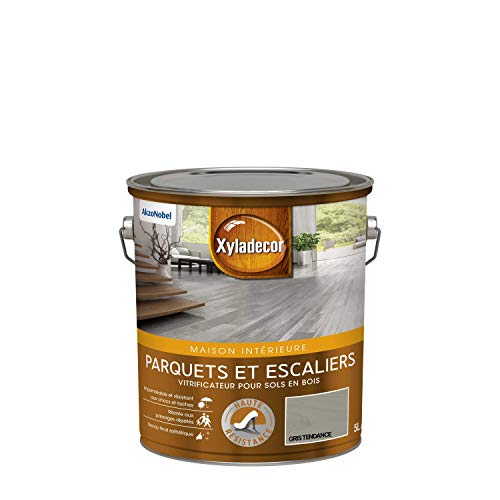 Xyladecor - Vitrificateur pour Sols Intérieurs en Bois Toutes Pièces - Parquets et Escaliers - Haute Résistance - Couleur : Satin Gris Tendance - Quantité : 5L - 5324771