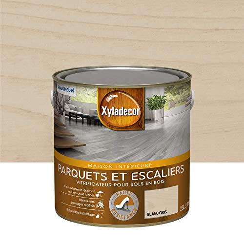 Xyladecor - Vitrificateur pour Sols Intérieurs en Bois Toutes Pièces - Parquets et Escaliers - Haute Résistance - Couleur : Satin Blanc Gris - Quantité : 2,5L - 5324770