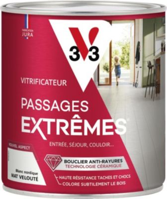 Vitrificateur parquet bois passages extrêmes Blanc Nordique mat velours V33 750 ml