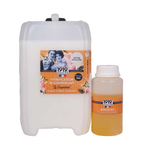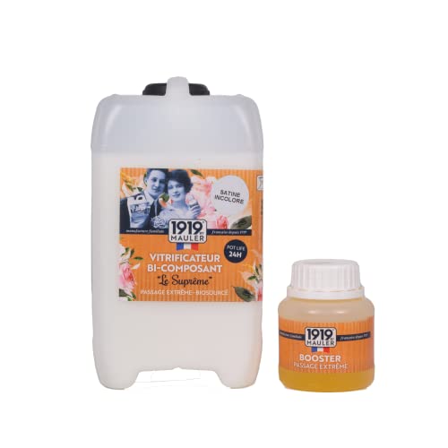 1919 BY MAULER - Vitrificateur Biosourcé Bi-composant « Le Suprême » -Satiné Incolore -5L- Anti-rayure, Tache et Usure - Pour Parquet Bois, Sol Stratifié, Liège,LVT - 4h de séchage entre chaque couche