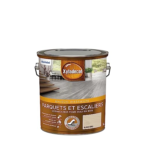 Xyladecor - Vitrificateur pour Sols Intérieurs en Bois Toutes Pièces - Parquets et Escaliers - Haute Résistance - Couleur : Satin Blanc Gris - Quantité : 5L - 5324775