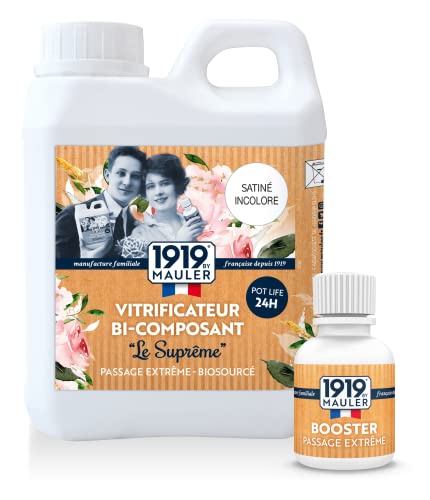 1919 by MAULER - Vitrificateur Bi-composant « Le Suprême » - Satiné Incolore - 1L - Anti-rayure, Tache et Usure - Pour Parquet Bois, Sol Stratifié, Liège - 4h de séchage entre chaque couche